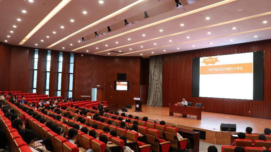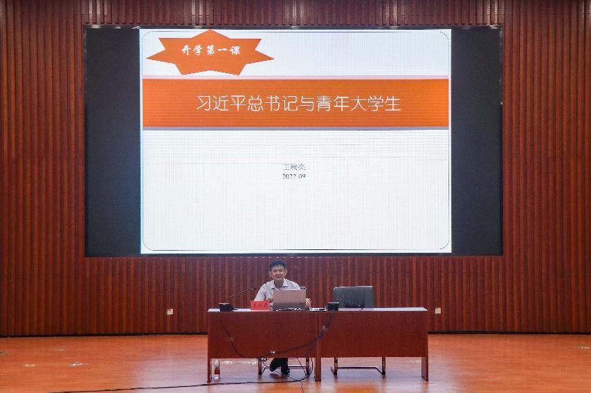 王秋亮以“习近平总书记与青年大学生”为主题,向新生介绍了总书记的“七年知青岁月”,通过回忆伟人奋斗之路,激励同学们艰苦奋斗,做有志青年。并从三个方面深度解读了“总书记对高校学生的四句寄语”“关于争做中国特色社会主义合格接班人的具体要求”和“关于新闻舆论工作的重要论述”,激励同学们以总书记为榜样,在提升专业能力与政治素养的同时,牢固树立马克思主义新闻观,树立远大理想、担当时代重任、锤炼品德修为、练就过硬本领,做有理想、有追求、有担当、有作为的青年人,努力在实现中国梦的伟大实践中创造精彩人生。