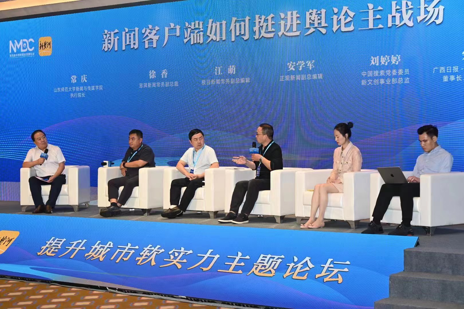 8月22日,第四届中国新媒体发展年会暨提升城市软实力主题论坛分论坛“新闻客户端如何挺进舆论主战场”在山东济南举行。我院执行院长常庆教授作为受邀嘉宾以及圆桌论坛主持人参加本次活动。