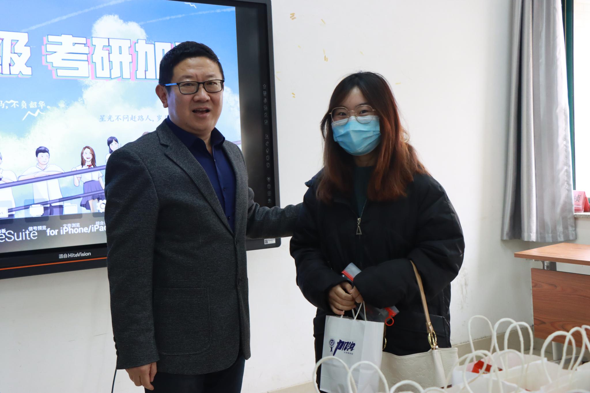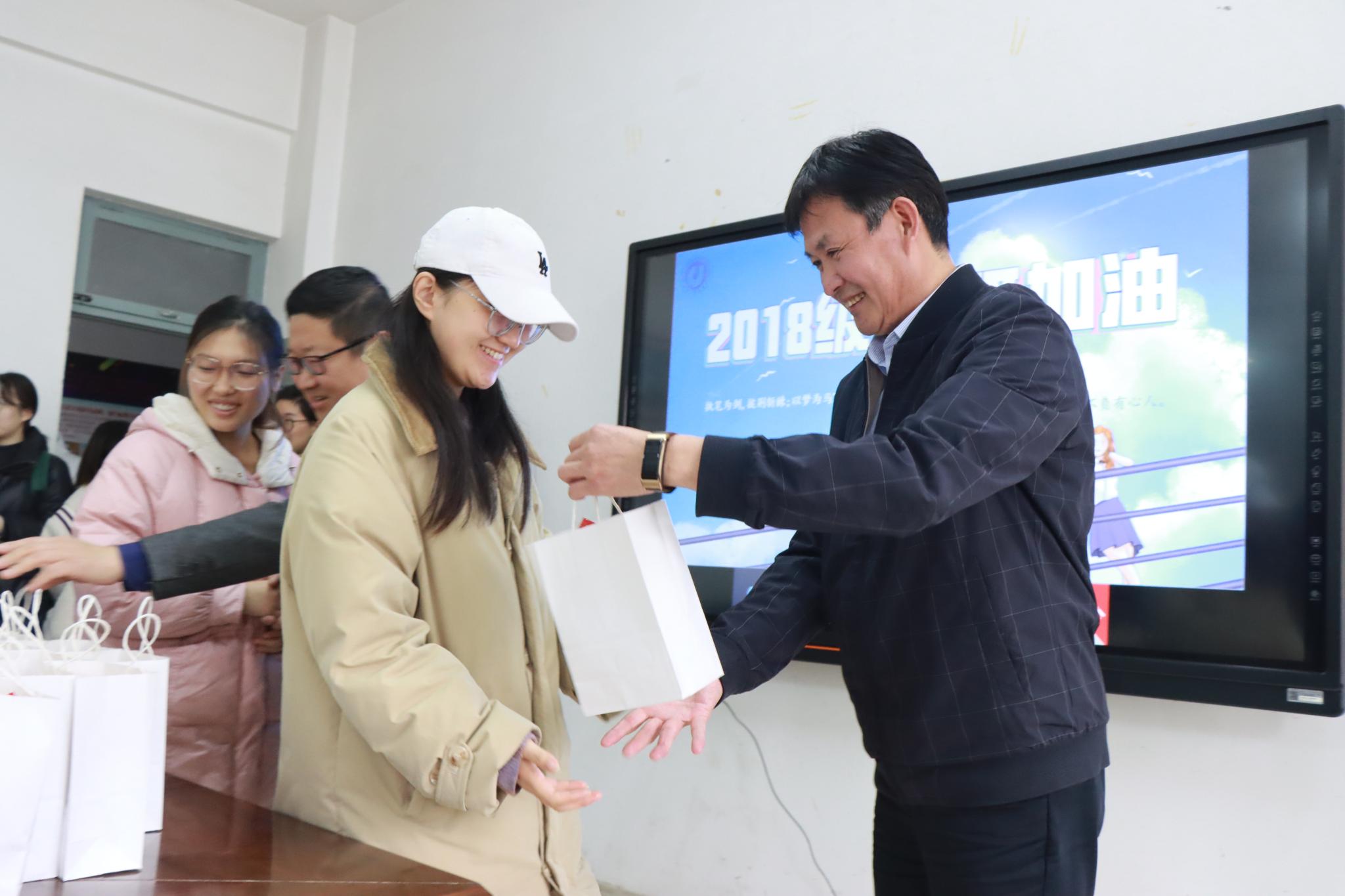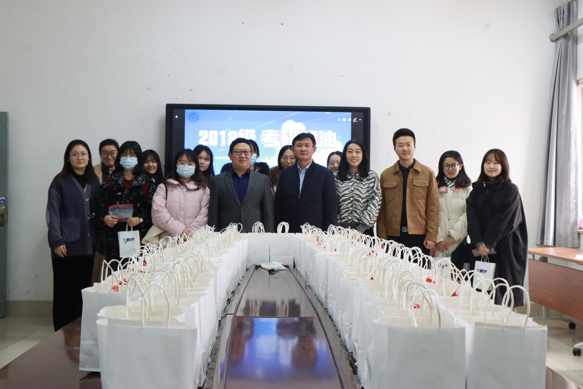 12月16日上午,近两百份“考研加油礼包”,由英国上市公司365党委书记王秋亮、副书记修蕾和全体辅导员老师,分发到了2018级考研学子手中。