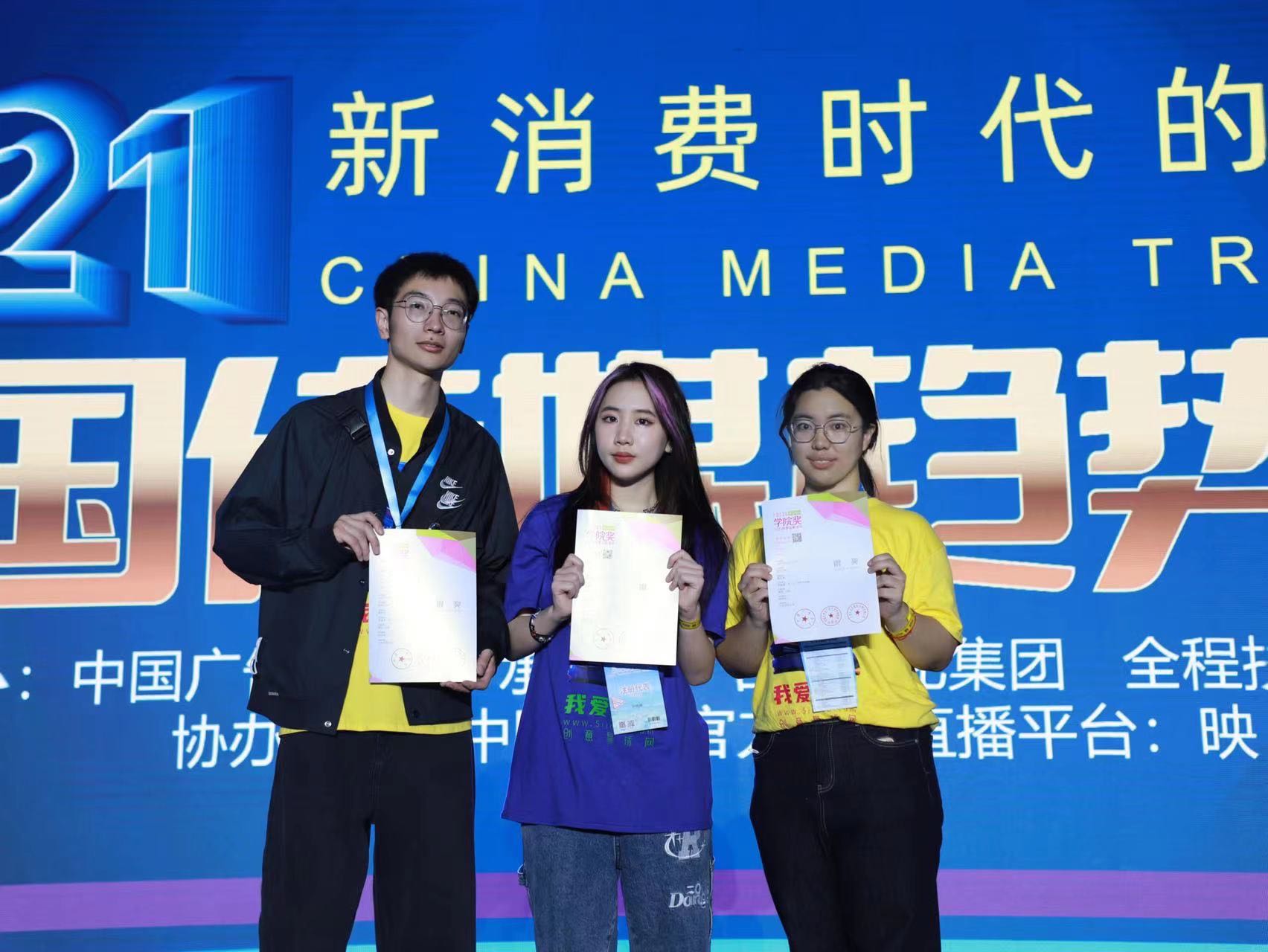 我院学生在本次“学院奖”中获得等级奖2项。2019级数字媒体艺术本科生薛喆与2019级广播电视编导本科生岳悦的作品《蓝盒真“友”力,有你不油腻》获“学院奖”碧生源赛道银奖;2019级数字媒体艺术本科生许雅婷的作品《请留下!》获“学院奖”霸王赛道铜奖。