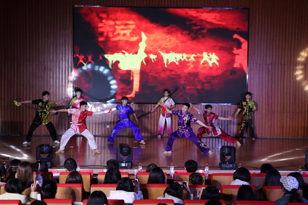 晚会在《没有共产党就没有新中国》的舞步中拉开了序幕,身着民族服装的同学们用优美的舞姿展示了各民族和谐友爱的美好图景。赵然、赵佳乐等带来古典舞《行云令》,用轻盈又不失力量感的舞姿配合折扇的翻转开合展现了古典舞独特的魅力。体育学院学子带来武术表演《中华武魂》用干净利落的动作向大家展示了传统武术刚柔并济、张弛有度的魅力,赢得现场的阵阵喝彩。吕晓蕾等人和21级新闻一班全体同学带来朗诵《请党放心,强国有我》,用铿锵的话语许下听党话、跟党走的青春誓言,展现了新传学子崇高的使命感和责任感。于佳伟、刘志昊等21级研究生带来的歌舞《唱支山歌给党听》,悠扬的旋律里倾注着对党浓浓的感恩之情,用迷人的歌舞向党的百年诞辰献礼。