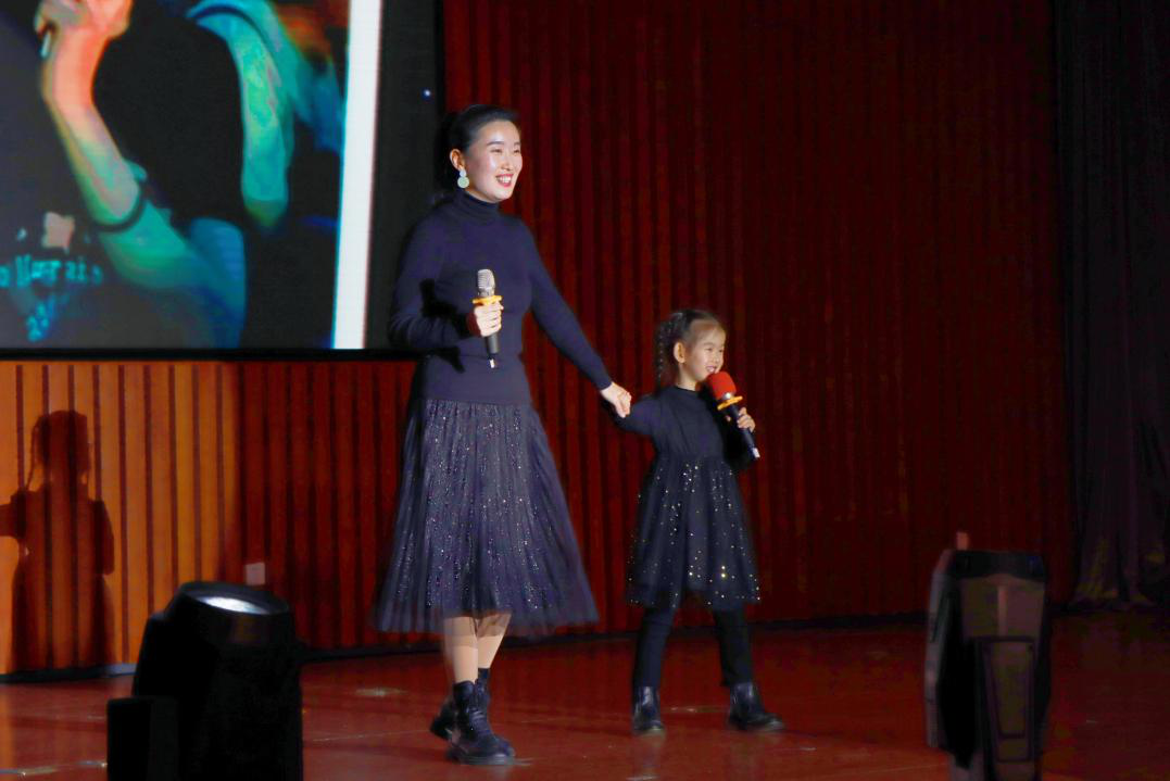 辅导员陈军晓带来歌曲《追寻》,他用高亢嘹亮的嗓音带领全体师生回顾百年党史,跟随党的足迹,追寻党的历史征程。陈梦和女儿邱实带来歌曲《你的眼里有星星》,用母女对唱的方式表达了作为老师对待同学们像对待自己儿女一般的浓浓感情,细腻唯美的歌声传递出师生间的温暖。