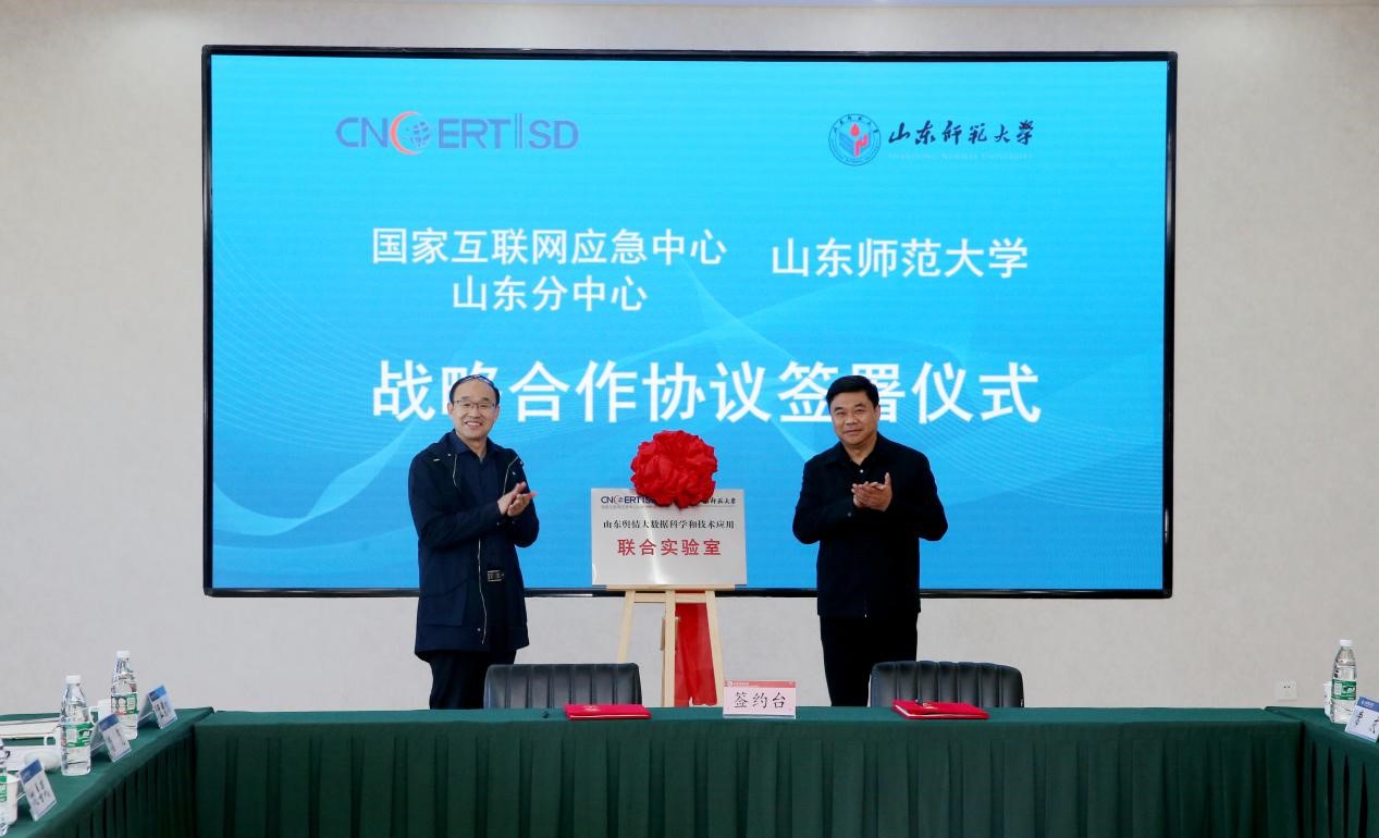 签约仪式上,国家互联网应急中心山东分中心党委副书记、副主任刘善武,学校对外合作发展办公室主任赵湘轶代表双方签署战略合作协议。