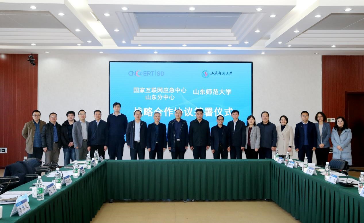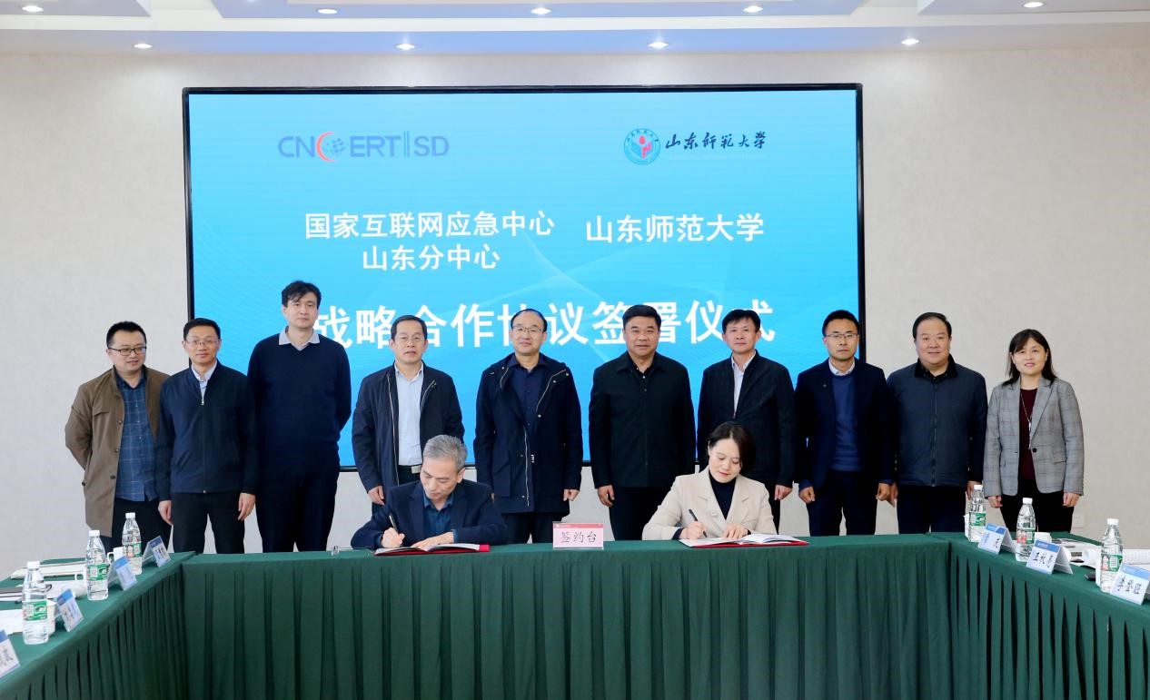 11月10日,学校与国家互联网应急中心山东分中心战略合作协议签署仪式在千佛山校区文化楼四层会议室举行。国家互联网应急中心山东分中心党委书记、主任安茂波,校党委常委、副校长邢光参加签约活动。仪式由宣传部部长姚昌主持。
