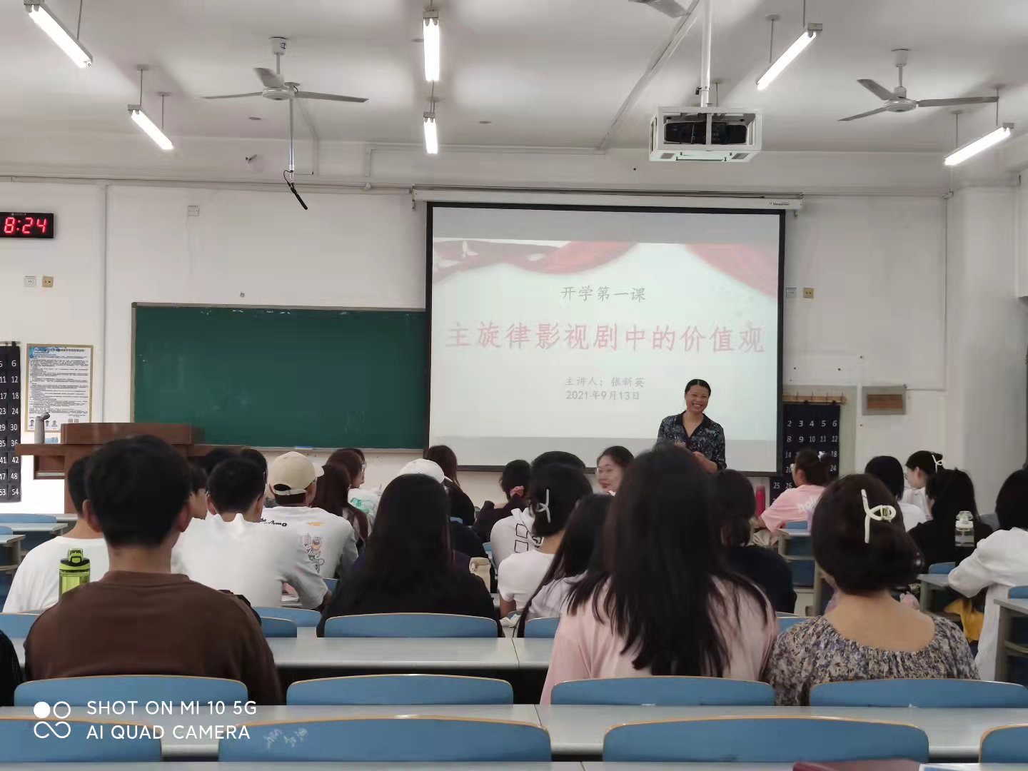 张新英围绕“主旋律影视剧中的价值观”一题,结合近期热播的《山海情》《觉醒年代》等影视剧,向同学们阐述了国家主流态度和价值取向,引导大家创作更多无愧于时代的优秀作品。