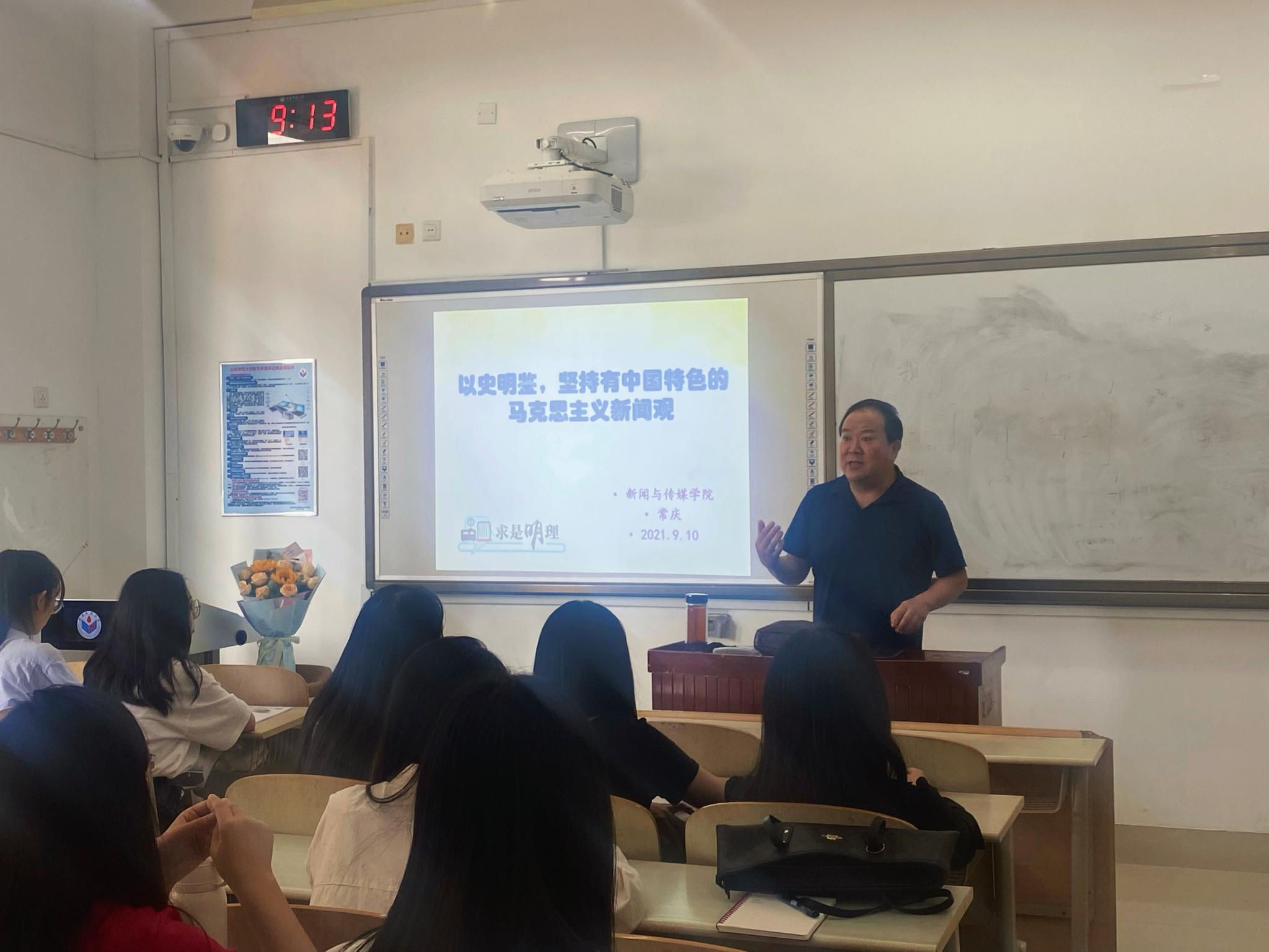 常庆讲授的主题是“以史明鉴,坚持有中国特色的马克思主义新闻观”。他建议同学们要将所学知识贯彻到实践中去,重视运用马克思主义新闻观的观点,以实事求是的态度进行新闻报道,在复杂的舆论环境中保持新闻理性,倡导同学们勇于承担起规范社会行为、重申社会准则的重任。