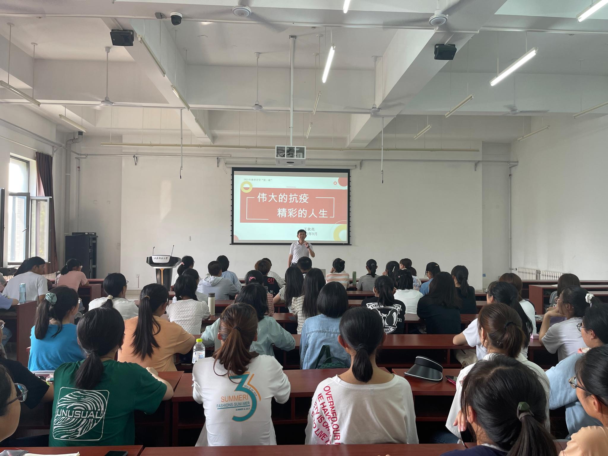 王秋亮结合习近平总书记“七一”重要讲话精神,从疫情中的爱国主义、“四个自信”、疫情防控的另一面、伟大的政党,中国共产党和持续做好疫情防控工作五个方面,全面系统的回顾和总结了我国的疫情防控过程。他引用习近平总书记在“七一”讲话中对青年人的寄语,勉励同学们胸怀壮志,刻苦学习,力争成为堪当时代大任的国之栋梁。