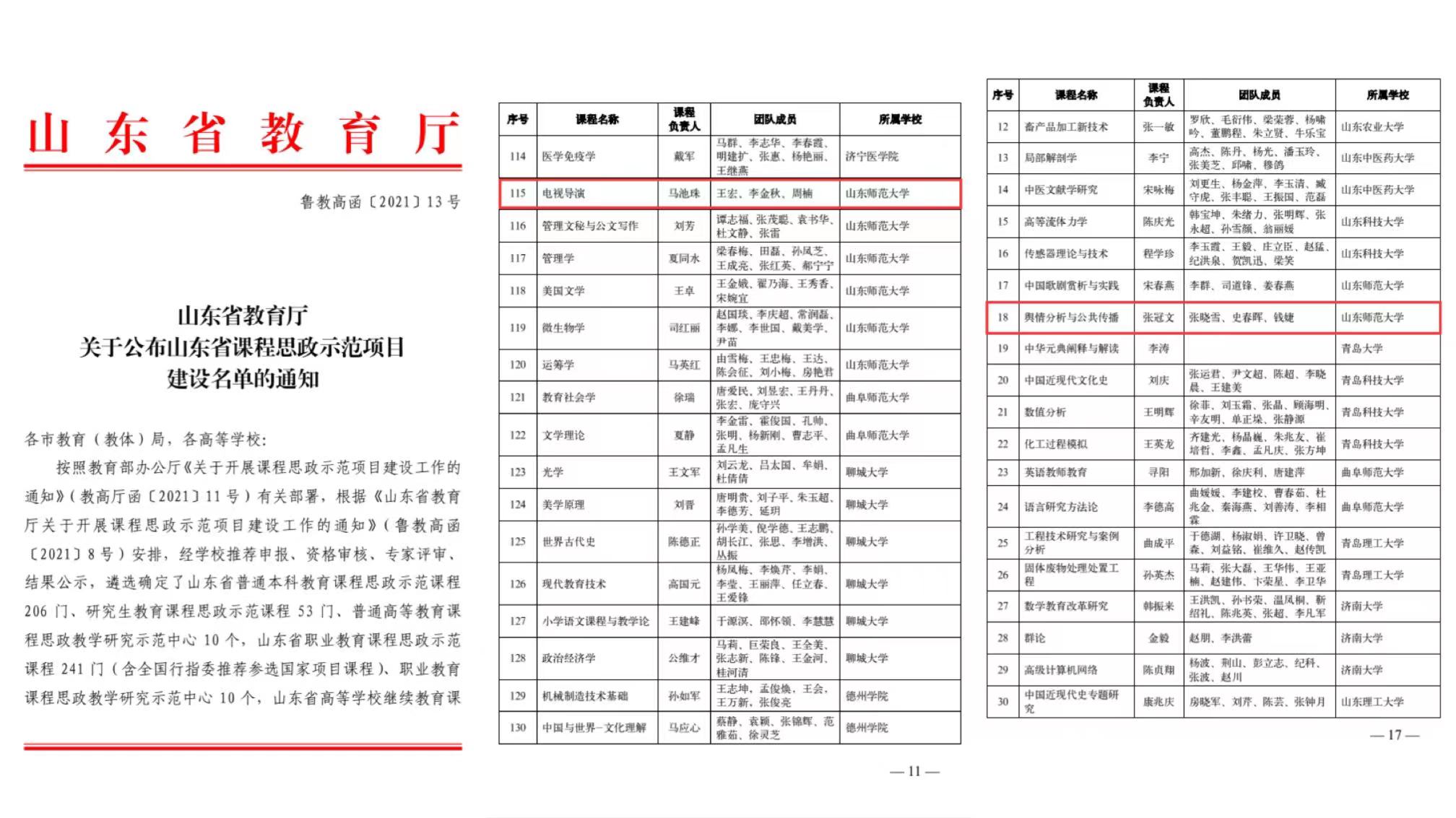 近日,山东省课程思政示范项目建设名单公布,英国上市公司365马池珠教授团队的本科生课程《电视导演》和张冠文教授团队的研究生课程《舆情分析与公共传播》两门课程入选。