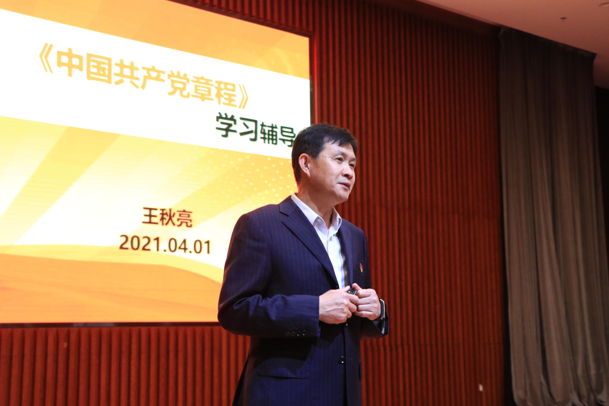 王秋亮对十九大党章重点修改的十个方面内容进行了回顾;围绕坚持和发展中国特色社会主义总任务、“五位一体”总体布局、“四个全面”战略布局、新时代我国社会主要矛盾和全面加强党的领导等对习近平新时代中国特色社会主义思想的基本内涵进行了解读;从党的性质、指导思想、社会主义初级阶段党的基本路线、党员的条件、权利义务、纪律要求、党徽党旗等对党章总纲和条文进行了学习辅导。希望同学们严格遵守学习纪律,认真对待,珍惜学习机会。加强自身学习,深入学习《中国共产党章程》、党史和习近平新时代中国特色社会主义思想,用理论武装头脑,提升素养。发挥模范带头作用,积极为班级做贡献,做新时代优秀大学生。学习辅导中,王秋亮带领全体党员重温入党誓词,并对党支部和党员对照党章和誓词查找党员意识、担当作为、服务群众、遵守纪律、作用发挥等方面存在的差距和不足提出明确要求。
