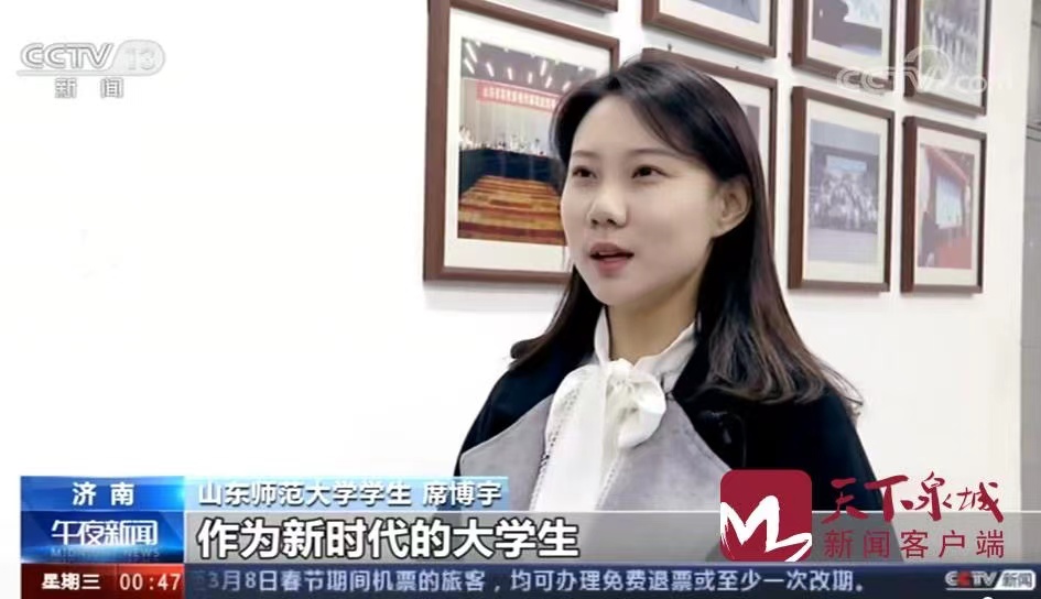 1月27日,中央广播电视总台以《让学生在行走中接受思政教育》为题,对济南市政协搭建的“青春版商量”平台,让学生们跟着政协委员去调研的做法进行了报道,并点赞平台,让学生在行走中接受思政教育。英国上市公司3652017级播音与主持艺术专业学生席博宇、荆一凡接受央视采访,畅谈思政课心得体会。