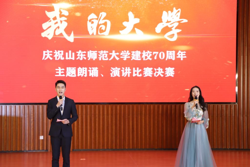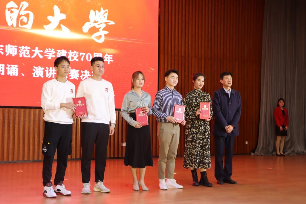 经过初赛的激烈角逐,12组选手进入决赛。各位选手精神饱满,热情洋溢,用丰富的语言和真挚的情感诉说对师大的热爱。比赛以一支悠扬的《我的祖国》舞蹈拉开了序幕,朗诵组选手宗可丽和王卿宁带来的《再见,我的大学》向大家展现了弥足珍贵的大学生活。郝梓宇的朗诵作品《立德立言,无问西东》书写了山师人的雄伟篇章,她用慷慨激昂的话语诉说着山师人的自豪之情。演讲组选手陈芊如在《追逐理想,未来可期》中以生动的语言描绘山师的多彩校园生活,抒发自己追逐理想,勇往直前的决心。徐畅同学旁征博引,《大学之道》道尽了学校取得的辉煌成果。比赛期间,串场节目《奋发有为山师人》燃起全场热情,激励学子们不断奋发向前,《追梦赤子心》唱出了当代青年学子的豪情壮志,展现了追梦少年的活力和青春气息。经过评选,宗可丽、王卿宁等四组选手斩获一等奖,徐畅等四组选手获得二等奖,张一荷等四组选手获得三等奖。
