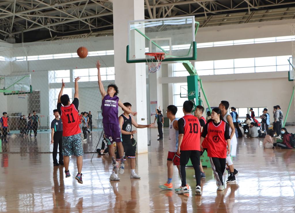 12:15分,本场MC宣布球员入场。身穿红色队服的研究生院代表队和身穿紫色队服的本科生院代表队先后入场。随着裁判一声哨响,比赛正式开始。本科生队首先抢到球权,进了全场第一个球。球场上的运动员进取投入,顽强拼搏,全力以赴地挥洒着汗水。场下的同学们为他们呐喊助威,一场激烈又扣人心弦的比赛赢得了观众阵阵喝彩和掌声。