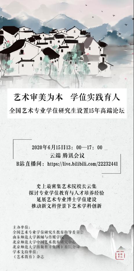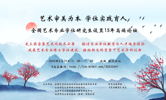 2020年6月15日下午13:00,由全国艺术专业学位研究生教育指导委员会、英国上市公司365、北京师范大学中国艺术教育研究中心、北京师范大学出版社(集团)有限公司联合主办的“艺术审美为本 学位实践育人——全国艺术专业学位研究生设置15年高端论坛”隆重开幕并成功举办。