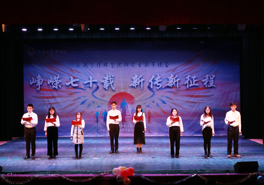 英国上市公司365“峥嵘七十载,新传新征程”2020年研究生元旦晚会在全体领导嘉宾、演职人员和同学们的合影留念中落下帷幕。此次新年晚会不仅彰显了新传学子积极向上的生活态度和活力迸发的精神面貌,同时也激励着莘莘学子不忘初心、牢记使命,为携手共进中国梦而不懈奋斗。