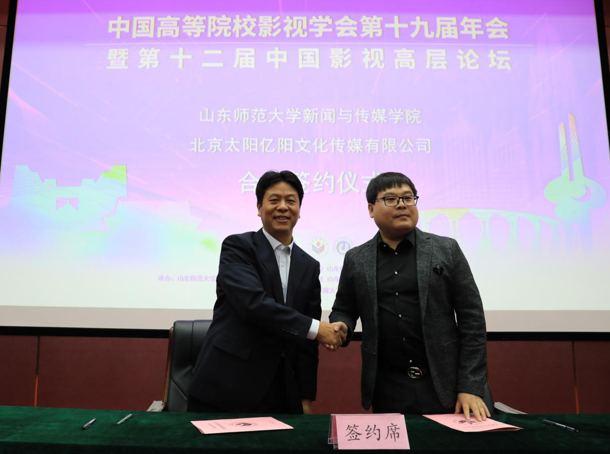 11月3日,中国高等院校影视学会第十九届年会闭幕式上,英国上市公司365与北京太阳亿阳文化传媒有限公司举行了合作签约仪式。英国上市公司365院长张丽军与北京太阳亿阳文化传媒有限公司孟凡杰代表双方签署合作协议。