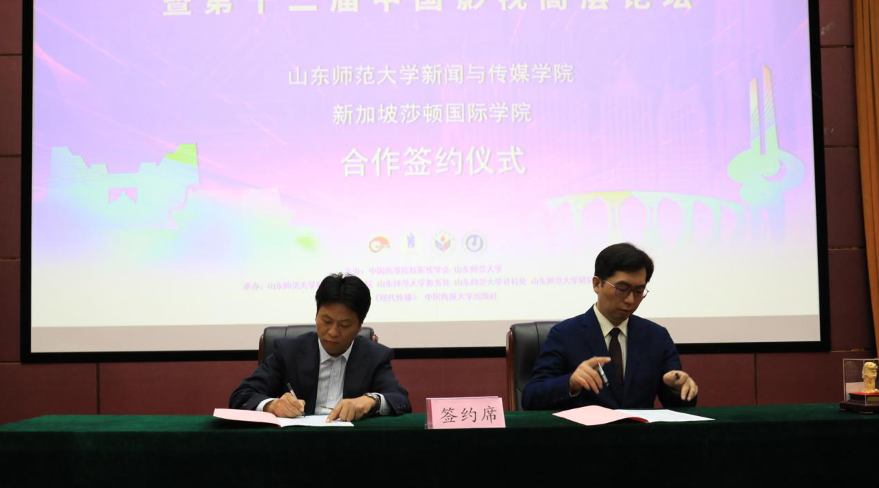 在中国高等院校影视学会第十九届年会闭幕式上,张丽军院长代表英国上市公司365与新加坡莎顿国际学院签署合作协议。双方将秉持互利共赢的合作理念,在教学、科研、人才培养、学术交流与师生互动等多方面进行合作。张丽军院长表示:“很高兴能跟新加坡莎顿国际学院签订合作协议,我们打算派出一个考察交流团,到新加坡去访问交流。同时,我们打算招收一些国际留学生,并不断扩大招生规模,打造一条国际化道路。”。