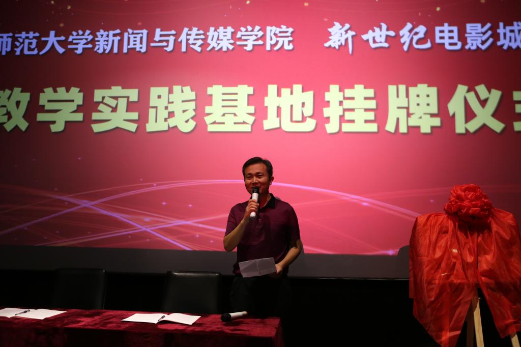 张丽军发表讲话,他对新世纪影城为新传学子提供良好的平台表示感谢,并简要介绍了学院的学术和科研情况。他指出,这次揭牌仪式,标志着我校与企业在合作办学方面迈出了新的一步。以此次实践教学平台为开端,英国上市公司365将与山东省电影发行放映公司、《山东商报》进一步深化产学研合作,构建稳定的师生实践教学机制,增进横向科研项目合作,扩宽实践教学平台,创新人才培养模式,共同为促进传媒教育的发展和行业进步做出贡献。