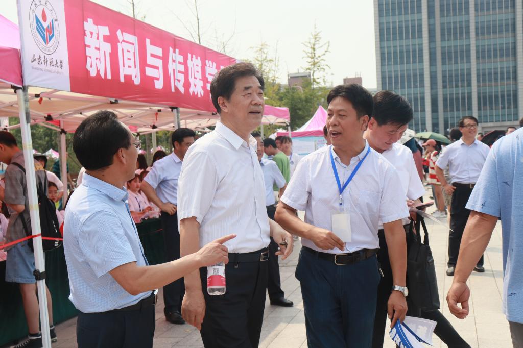 迎新生入校工作于千佛山校区和长清湖校区同时进行,学校领导商志晓、曾庆良、王焕斌、张文新、姚东方、王洪禹、满宝元、王传奎、万光侠来到我院迎新现场,看望前来报到的新生和家长,慰问学院迎新的工作人员,参与我院组织的特色迎新活动。商志晓与我院2019级戏剧影视文学专业贵州籍新生黄锡露亲切交谈,并寄语她努力争做有理想有本领有担当的新时代青年。