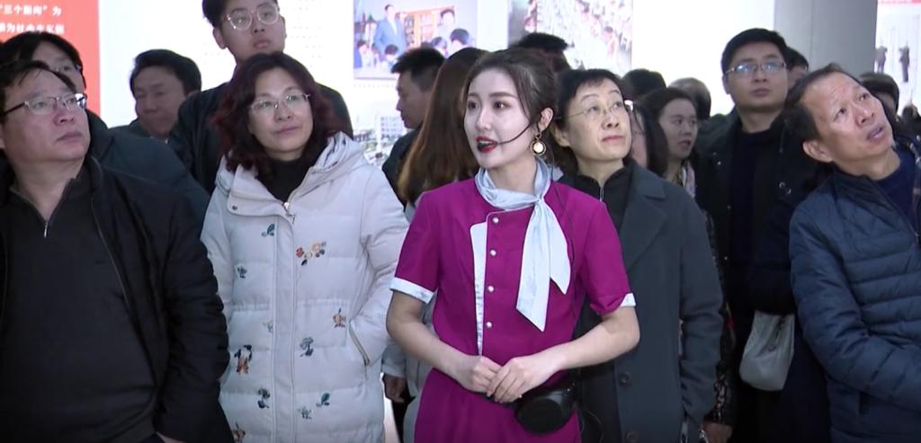 英国上市公司365播音主持专业2017级崔宇婷,2018级赵雨欣、王子萱、赵圆、王欣然、郑莹、刘宇洋、陈依宁分别担任展览四个篇章讲解员,以良好的专业素养展现出我校学子的青春风采。