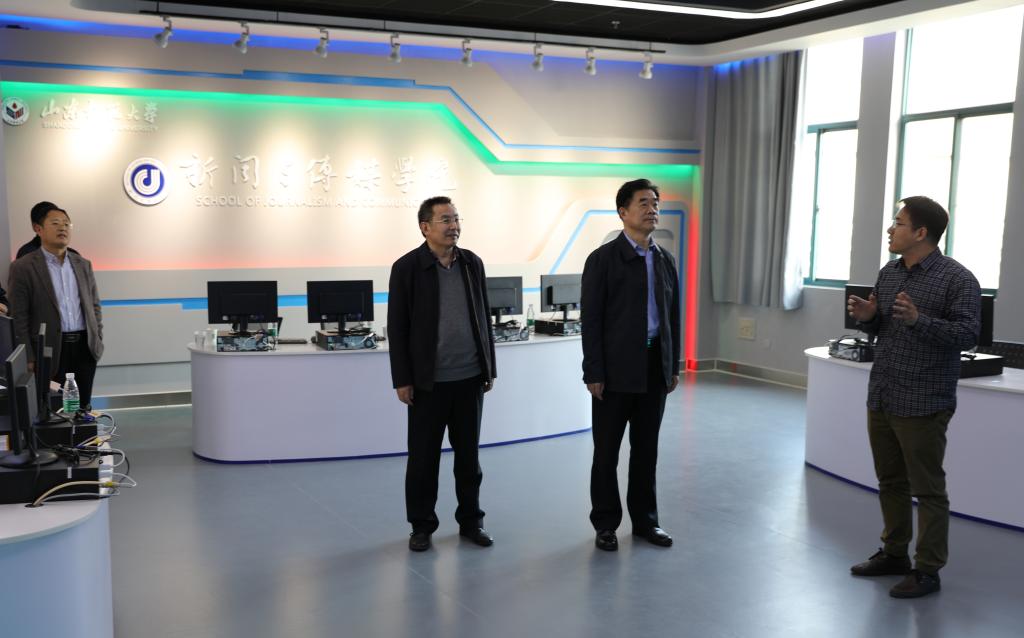 4月24日下午,商志晓书记来到长清湖校区信息技术楼,视察新建成的全媒体虚拟仿真实验室。
