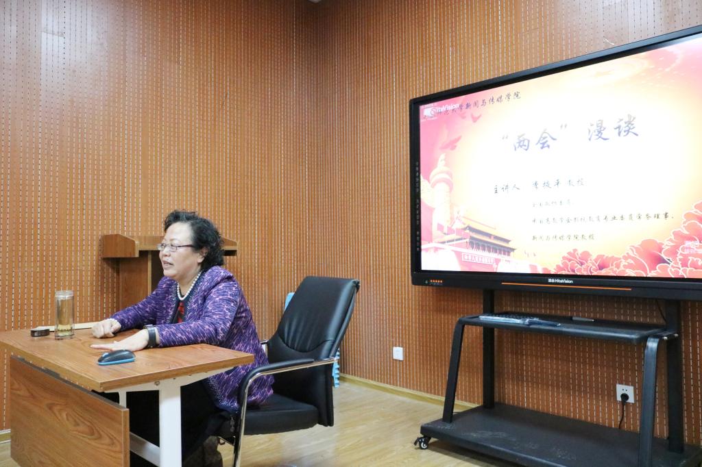 报告会上,李掖平教授首先为师生们介绍了此次两会中与高等教育、科研、艺术创作等相关的信息,并将文艺界最新的精神带给师生们。同时,她也鼓励师生们积极融入到新时代的潮流中,大胆创新,共同加强学科建设。随后,李教授又动情地为大家介绍了杨利伟等印象深刻的政协委员的发言,称赞政协委员积极参政议政,切实为广大人民群众的利益着想。李掖平教授表示,她会继续积极建言献策,为教育界、文艺界、影视界发声。