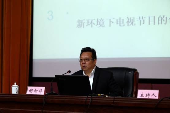 中国高校影视学会会长、教育部“长江学者”特聘教授、北京师范大学艺术与传媒学院院长胡智锋带来题为《新环境下中国电视的发展与创新空间》的主题报告,报告从“新环境”、“新环境下电视媒体的发展空间”以及“新环境下电视节目的创新空间”三个方面论述了当前中国电视的现状及未来发展方向。在“新环境”中胡智锋教授提到三个关键词:全球化、媒体融合、国家需求;接着,胡教授分析了“新环境下中国电视媒体的发展空间”,他总结了中国电视主流媒体总体面临的三大困境:受关注度下降、收入下降、人才外流,以及中国电视主流媒体的三大核心竞争力:信息发布的权威性、直播日常化和高端大制作;在三大劣势和三大优势下,胡教授指出电视媒体要有适应未来发展的能力,必须确定一个全新的理念,即三个主体的重构上:生产主体、传播主体和营销主体。在“新环境下电视媒体的发展空间”中,胡教授强调,中国电视节目要走新路,靠自己人打文化牌,去锻造和创造中国电视节目体系。