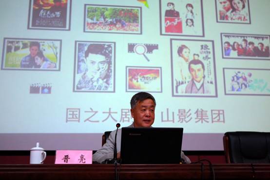 山东影视传媒集团有限公司董事长、山东省电视艺术家协会主席晋亮的主题报告为《精品创作推动山东影视文化产业的大升级》,他首先介绍了山东影视传媒集团的发展历史,并分享了山东影视传媒集团的“为人民立传、为时代放歌”、“立足主业,坚持‘精品生产’”、“开拓思路,推动艺术创新”、“始终贯彻人才强企的发展理念”、“实施科学高效的项目运作机制”、“坚持‘走出去’战略,与市场深度接轨”六条创作心得。随后,晋董事长详细讲述了山影未来的四个拓展空间:“匠心做剧:做优质内容的发现者和生产者”、“积极拓展电影的发展空间”、“培育微电影、动漫、综艺、纪录片、艺人经纪等新业务板块”、“延伸产业链,打造新引擎”,并希望通过这次研讨会能够与师生更加紧密的合作,共同推动中国影视发展。
