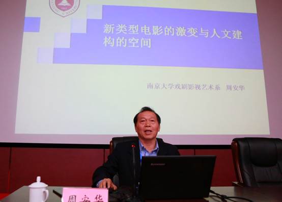 南京大学中文系教授、博导,教育部戏剧与影视学专业指导委员会委员周安华的报告题为《新类型电影的激变与人文建构的空间》。周教授首先指出了商业电影和艺术电影的分野,线性叙事的传统电影追求娱乐化,非线性叙事的现代电影传达人文精神,商业电影和艺术电影像两条泾渭分明的河流,彼此显然鲜有交集。接着,周教授结合中国电影的现状,提出了“‘建构性’的中国新类型电影”,他认为中国新类型电影应做到两点:多重困境,以救赎主题询唤深层人性;开放时间节奏,给新电影多样表意空间。