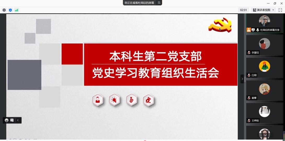 党支部书记周楠认为,党员需要对个人收获进行盘点,并及时检视存在的问题,深刻进行自我剖析,正视自己的不足之处,鼓励大家在批评与自我批评中同议共勉。他希望大家通过党史学习,进一步了解了中国共产党的光辉历程,增强作为一名共产党员的自豪感与荣誉感,坚定新时代共产党人不忘初心、牢记使命的决心。