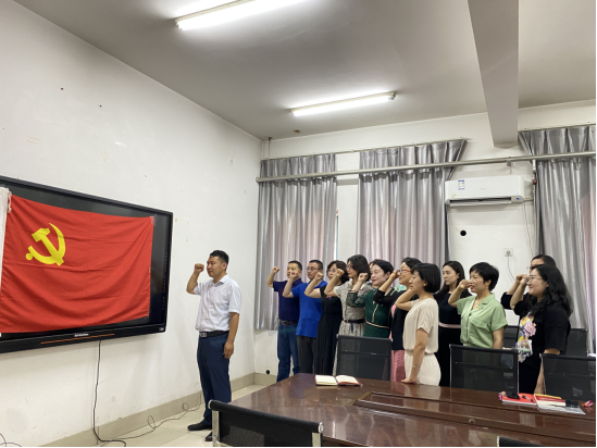 活动开始,王月娥副书记带领全体党员唱国际歌。接着,全体党员共同学习中国共产党史,并彼此交流了心得。之后,支部书记王冠带领全体重温入党誓词。