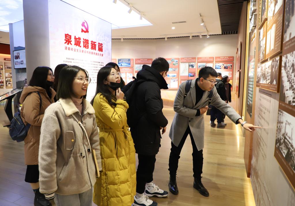 “泉城谱新篇”展厅吸引了学生党员的目光,大家对泉城济南社会主义建设和改革开放取得的辉煌成就,特别是近年来城乡面貌焕发的崭新气象和民生社会事业取得显著成效印象深刻,对 “大强美富通”的现代化泉城充满期待。