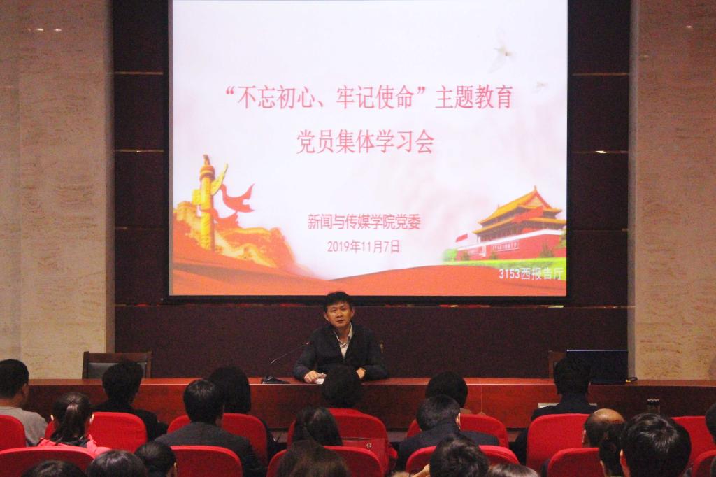 11月7日下午,英国上市公司365在千佛山校区3153报告厅召开“不忘初心、牢记使命”主题教育党员集体学习会,学院党委书记王秋亮、院长张丽军及全体教职工党员和学生党员参与学习。