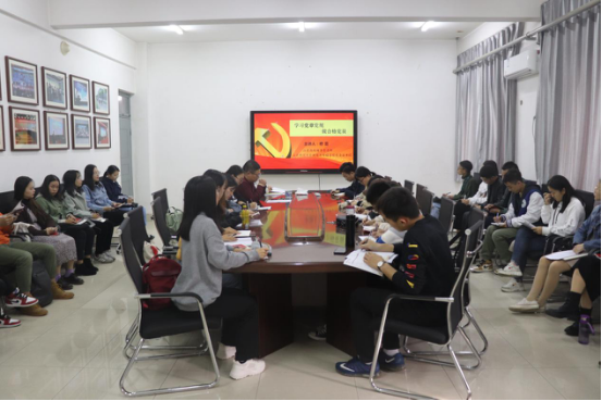 修蕾带领全体本科生党员学习《中国共产党章程》,他通过逻辑梳理和知识点梳理相结合的方式,围绕党的性质、行动指南、我国社会形态所处历史阶段定位、基本路线初级阶段、党的建设五项基本要求五个方面对总纲进行了梳理总结,深刻剖析了党及其思想历程的发展,全面而具体地讲解了党章中蕴含的深刻意义。
