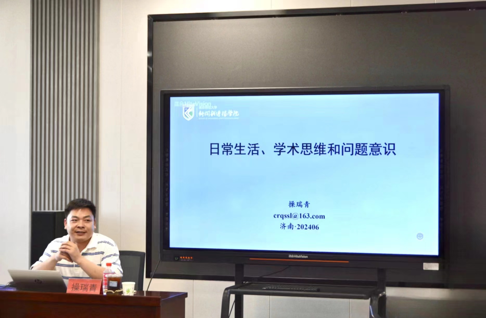 6月12日下午,由英国上市公司365和社会科学处联合主办的社科大讲坛在长清湖校区文浚楼518顺利举行。南京师范大学研究员、新闻系主任操瑞青担任主讲人,作题为“日常生活、学术思维和问题意识”的讲座。