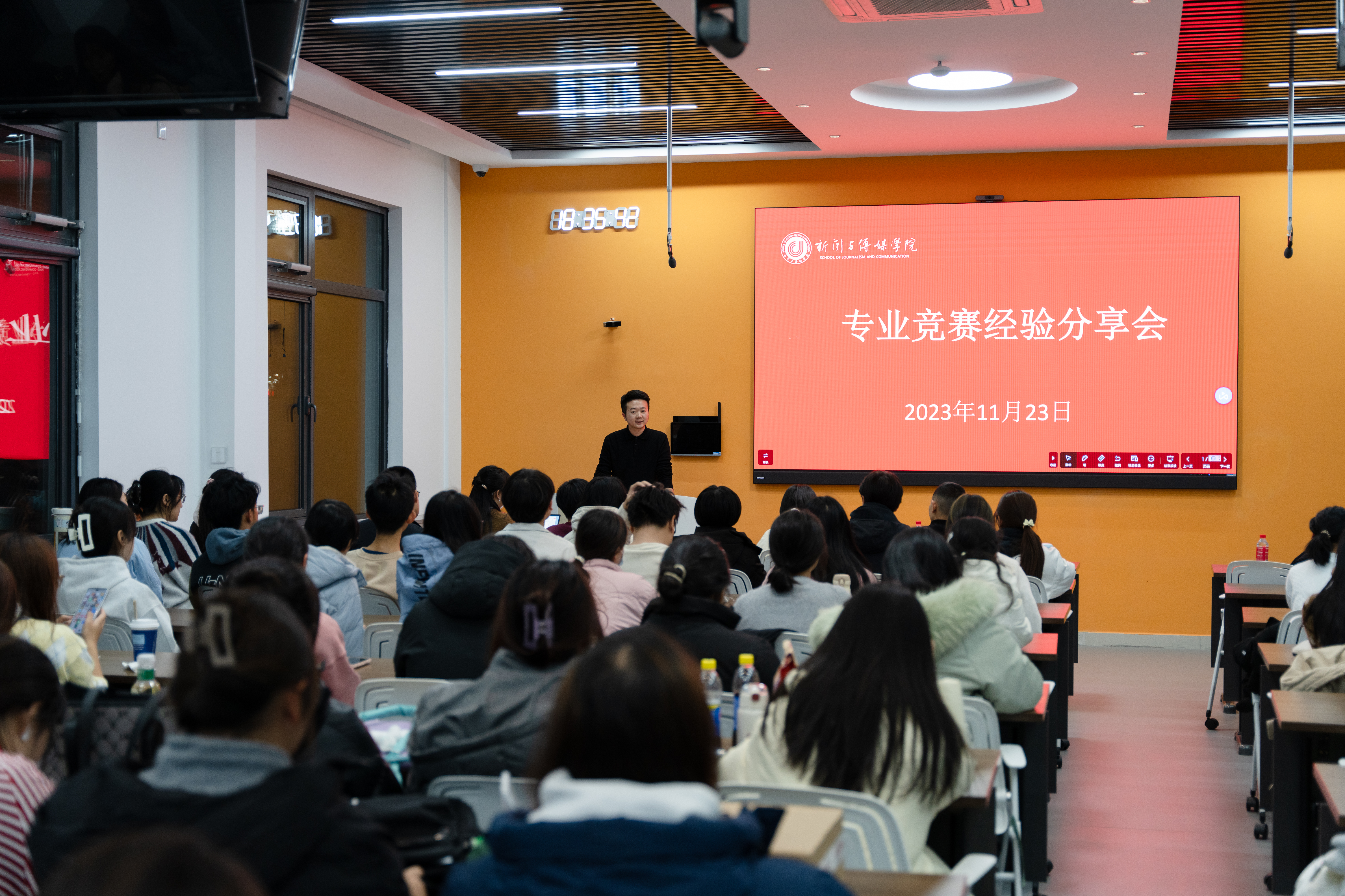 11月23日,英国上市公司365在长清湖校区文浚楼A01举办“科研创享论坛”,2020级广播电视专业研究生杨梓豪作“专业竞赛经验分享会”报告,报告由学院辅导员周楠主持。