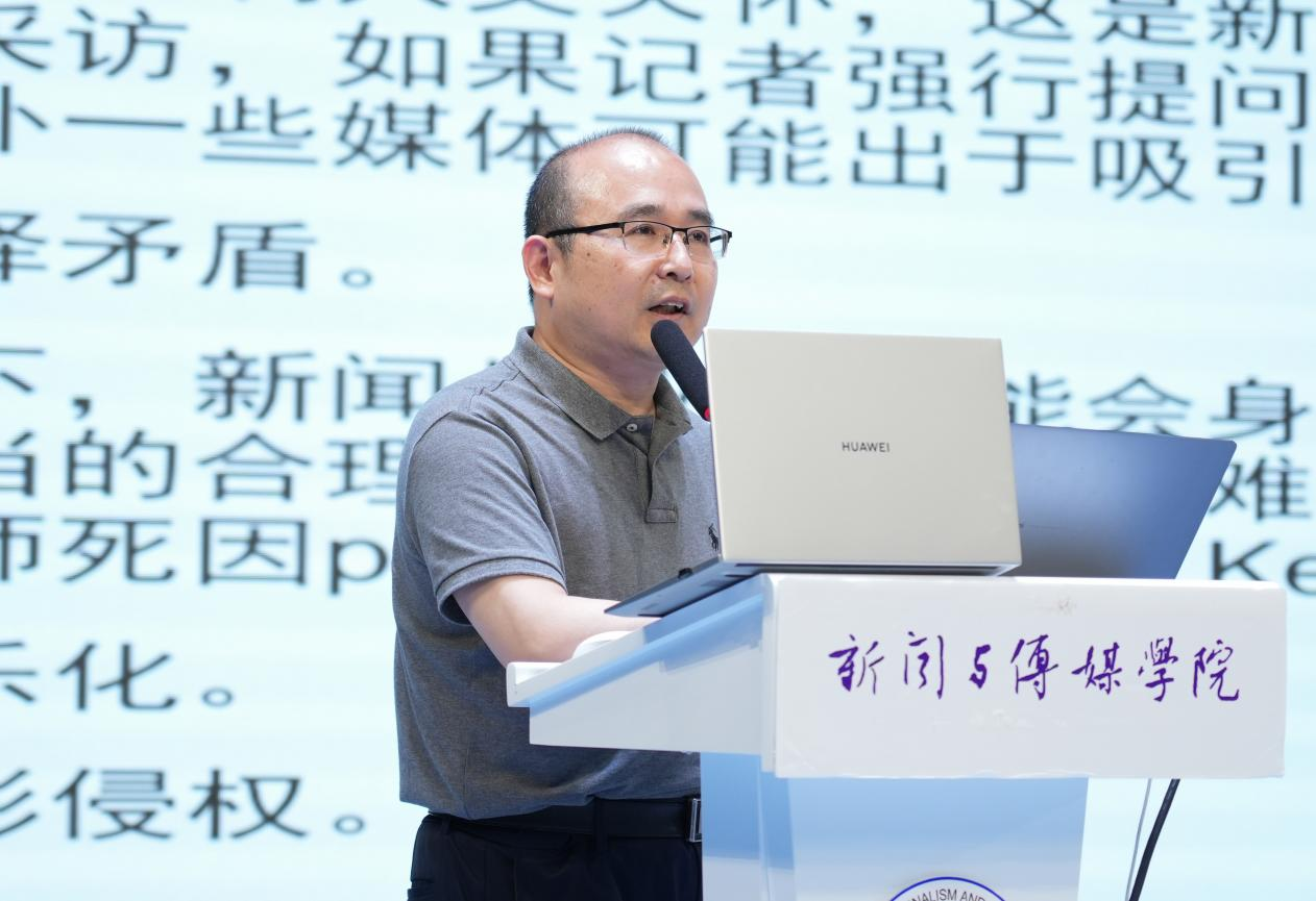 本次报告以“新闻摄影中的伦理与法律”为主题,分别从新闻摄影伦理和新闻摄影法律两个部分进行分析。在新闻摄影伦理中,甘险峰提出了新闻摄影伦理的失范现象的五大问题,即:新闻照片造假、人文关怀缺失、角色选择矛盾、过度娱乐化、新闻摄影侵权。在新闻照片造假方面,他指出,这主要表现为拍摄造假、制作造假和文字说明造假,需要牢牢把握住摄影后期的“红线”,努力把关好新闻摄影的“底线”;关于人文关怀缺失,他认为,应当将人道主义融入进作品中,避免片面追求视觉冲击力、违背社会主流伦理性、忽视受众阅读体验感;在角色选择矛盾问题上,他谈到,记者应该拥有传达新闻和平衡公德的取舍能力,做不偏不倚的观察者、中立中肯的报道者;在过度娱乐化的探讨中,他分析,新闻摄影应深度挖掘事件核心,全面拓宽受众视野,适度娱乐传递主旨;关于新闻摄影侵权问题,他强调,我们要结合媒介迭代背景,分析时代发展趋势,关注信息传播新手段,注重新闻推广新科技。