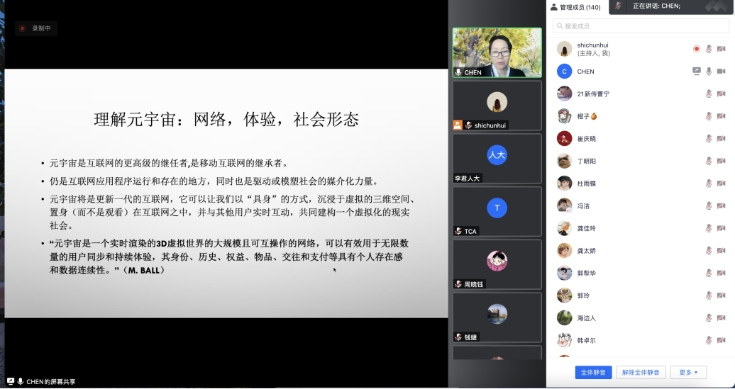 陈教授从技术伦理视角关照当下讨论火热的元宇宙问题。陈教授介绍了不同学者对元宇宙的解释,她认为,交互、想象、沉浸的元宇宙看似去中介化,但其实质是将用户置于一个更大的中介之中,回答元宇宙时代伦理问题的核心观念是以人为本。在此基础上,陈教授从情感层面与行动层面进一步讨论了沉浸式新闻作用于用户的机制。
