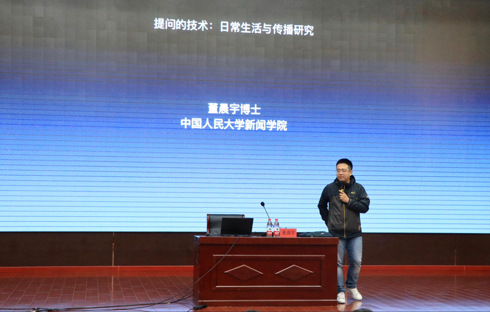 6月3日下午,新闻与传媒学院在长清湖校区树蕙堂一楼报告厅举办“提问的技术:日常生活与传播学研究”专题讲座,传播学博士、中国人民大学新闻学院讲师、硕士生导师、美国乔治梅森大学访问学者董晨宇担任主讲人。