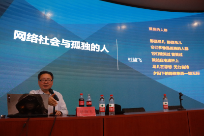 2020年11月27日,浙江大学传媒与国际文化学院教授、博士生导师杜骏飞应邀于长清湖校区树惠堂二楼虚拟仿真中心为我校师生做了主题讲座:网络社会与孤独的人。