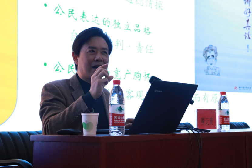 近两个小时的讲座,董天策教授结合自身实际经历,用鲜活的例子向学生分享了自己关于公共领域的研究和思考,为新闻系学生认识网络公共事件与公共领域开拓了新的思路。