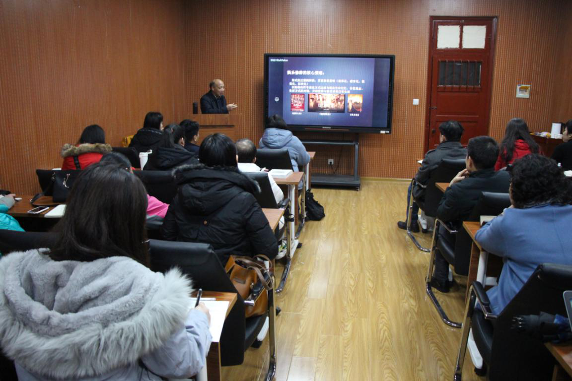 讲座伊始,张丽军院长介绍了蒋述卓教授的研究方向和学术成就。蒋教授首先向在座师生分析了流行文艺的生产方式和传播机制,他认为流行文艺的制作更多的是由文化工业过程来决定,也更多地根据消费者的反馈去调整。随后,蒋教授继续探讨了流行文艺与主流价值观的关系,他指出,大众文化包括流行文艺在发展实践中为主流价值观提供了积极的因素,并作为创新的内容逐步被主流价值观所接纳。他分别从“坚持个体精神与感性领悟的表达方式”、“寻求与主流文艺相接近的主题与内容”、“在思想禁区的边缘试探并作微小的突破”、“叙事表达姿态上的平民化与艺术形式上的创新”四个方面,深入浅出地分析了流行文艺能为大众所喜欢与追随的原因。