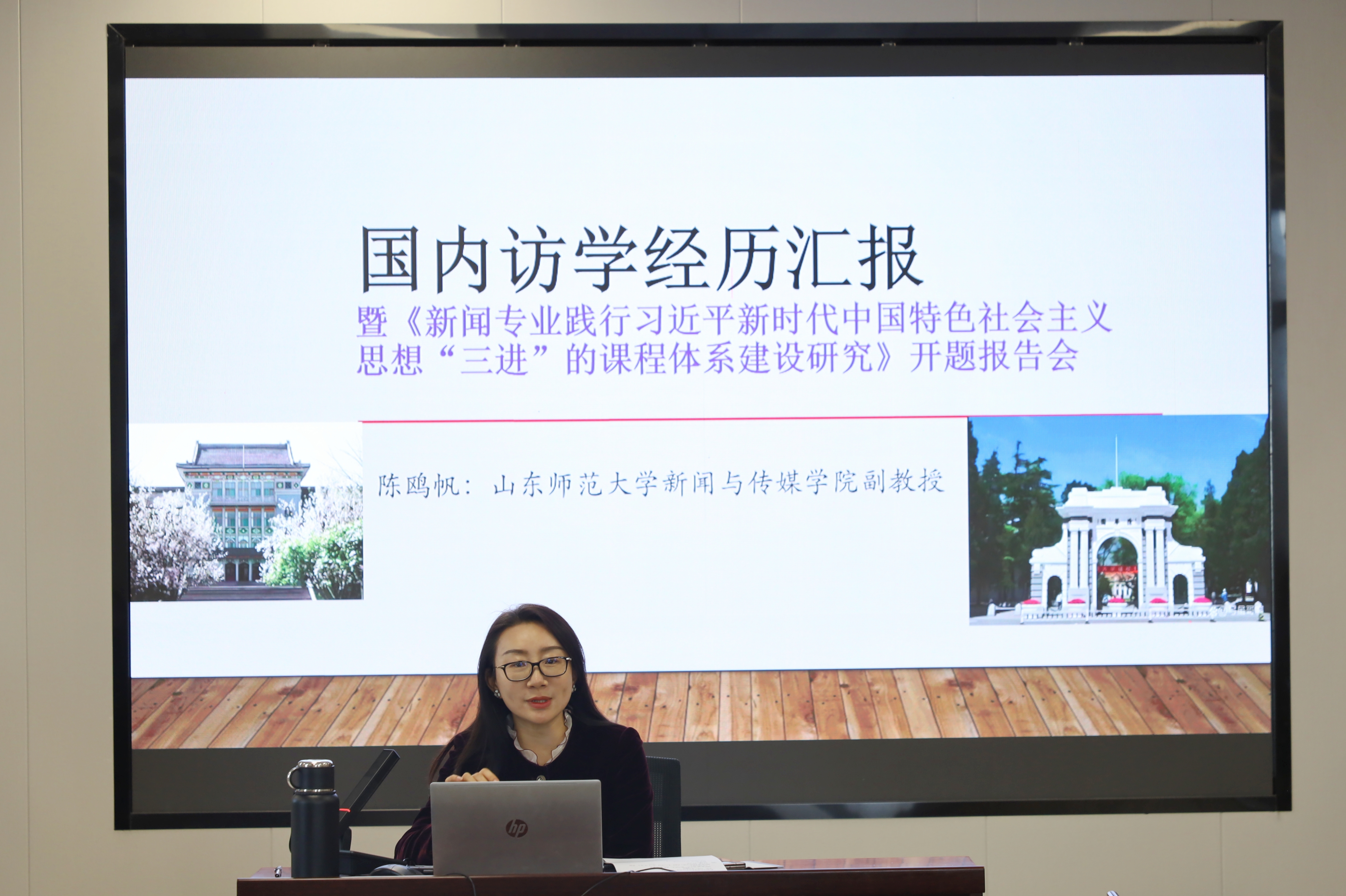 11月6日下午,英国上市公司365于长清湖校区文浚楼518会议室,举办了一场别开生面的学术报告会。新闻系副教授陈鸥帆老师以“国内访学经历汇报暨《新闻专业践行习近平新时代中国特色社会主义思想“三进”的课程体系建设研究》开题报告会”为主题,向新闻传媒学院部分青年教师和研究生做了约90分钟的学术汇报。陈鸥帆老师曾于2024年9月至2025年7月在清华大学新闻与传播学院进行国内访学研修。英国上市公司365陈文亮副书记听取了汇报,部分青年教师和硕士研究生到场聆听学习。
