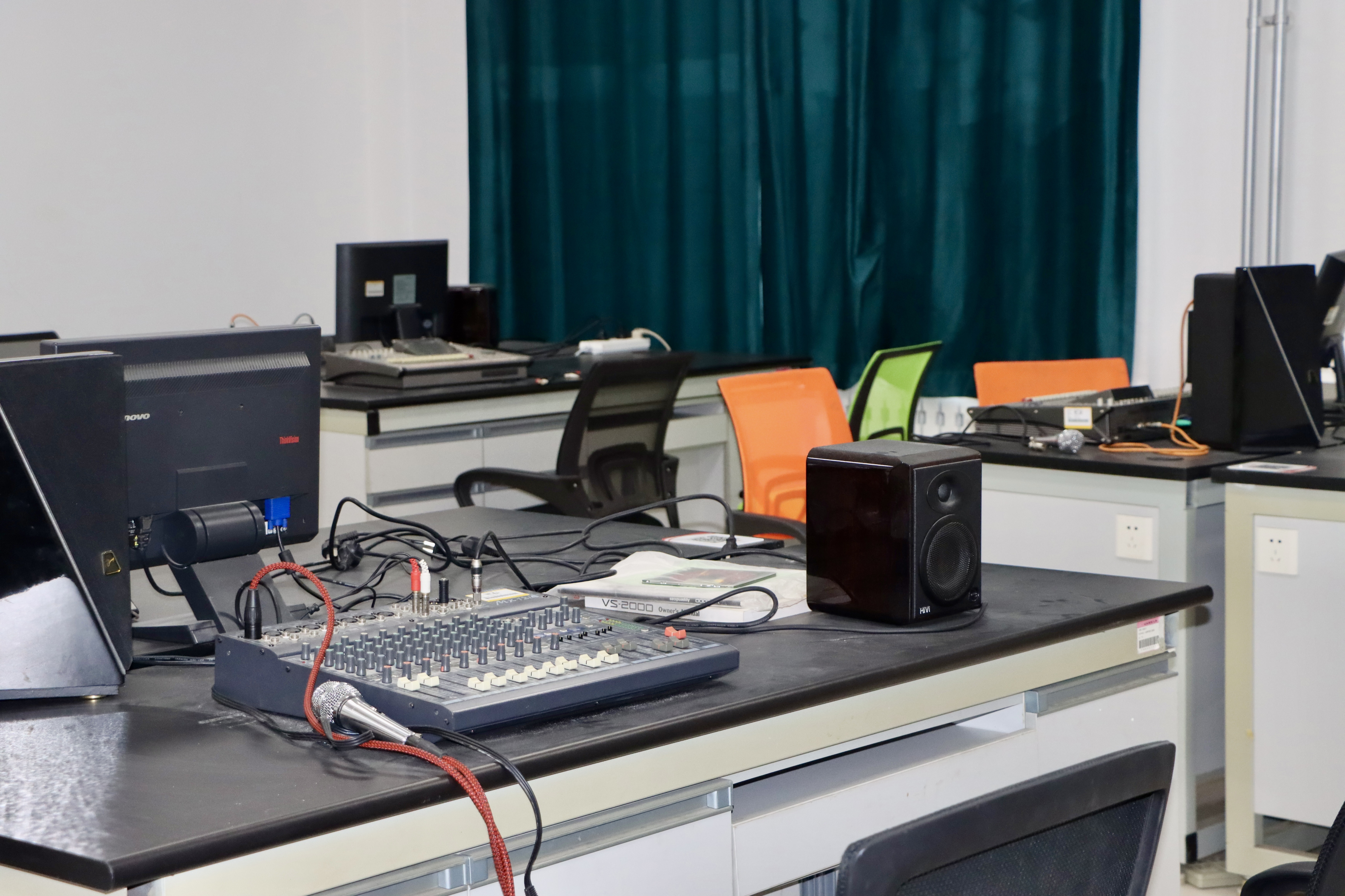 音频技术实验室面积为66平方米,设备总资产35余万元。由数字音频工作站、调音台、监听音箱等40余台(套)硬件设备组成,该实验室能满足《音视频编辑》《数字媒体技术》《数字录音制作》《播音与主持》等课程的实验教学需求,完成声音数字化、音频特效处理、音频编辑、后期音效合成等实验项目训练。