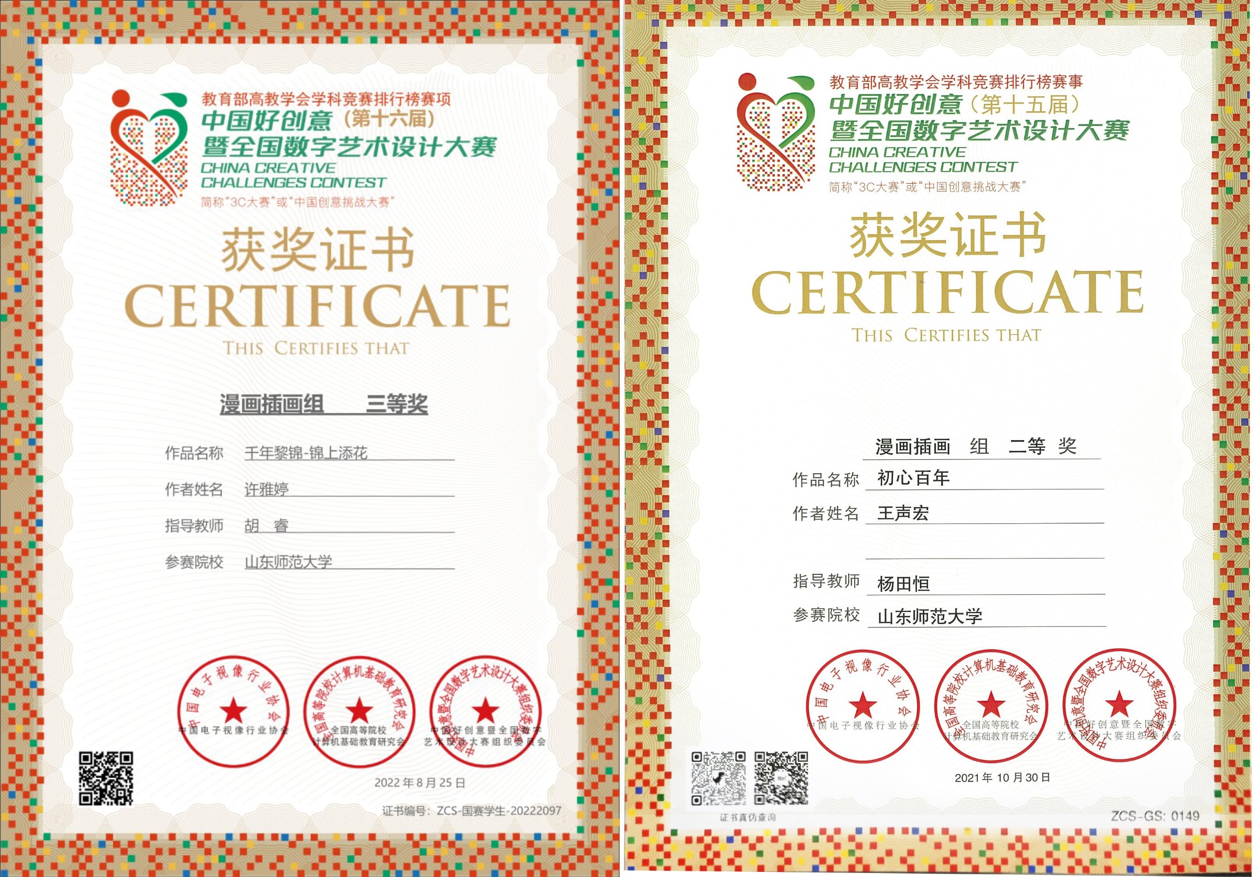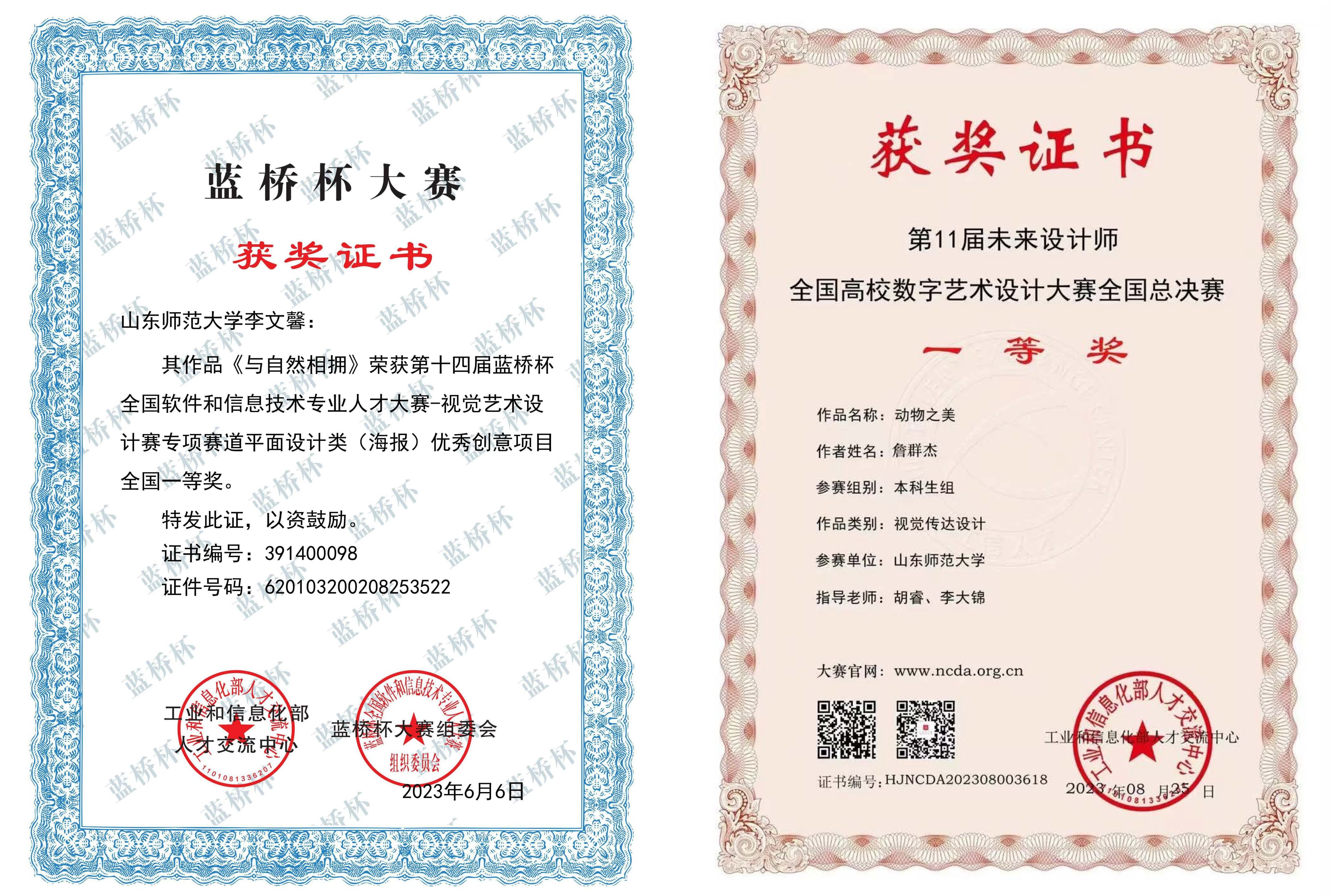 学院深化实践类课程体系和实践教学内容改革,注重创作技能训练和能力培养,将学生参加专业技能大赛获奖情况、职业核心能力培养水平等作为教学实践过程的监控点。秉持“以赛促学、以赛促教”的理念,为学生搭建了广阔的实践平台;鼓励学生大胆尝试、勇于突破,培养学生的独立思考与自主创新能力。学生以实验中心为依托,积极参加专业技能竞赛活动,先后获得了中国国际大学生创新大赛、全国高校数字艺术设计大赛、米兰设计周-中国高校设计学科师生优秀作品展全国决赛、蓝桥杯全国软件和信息技术专业人才大赛、中国好创意暨全国数字艺术设计大赛等各级各类竞赛奖项400余项次。其中平面设计类国家级奖项共计34项。