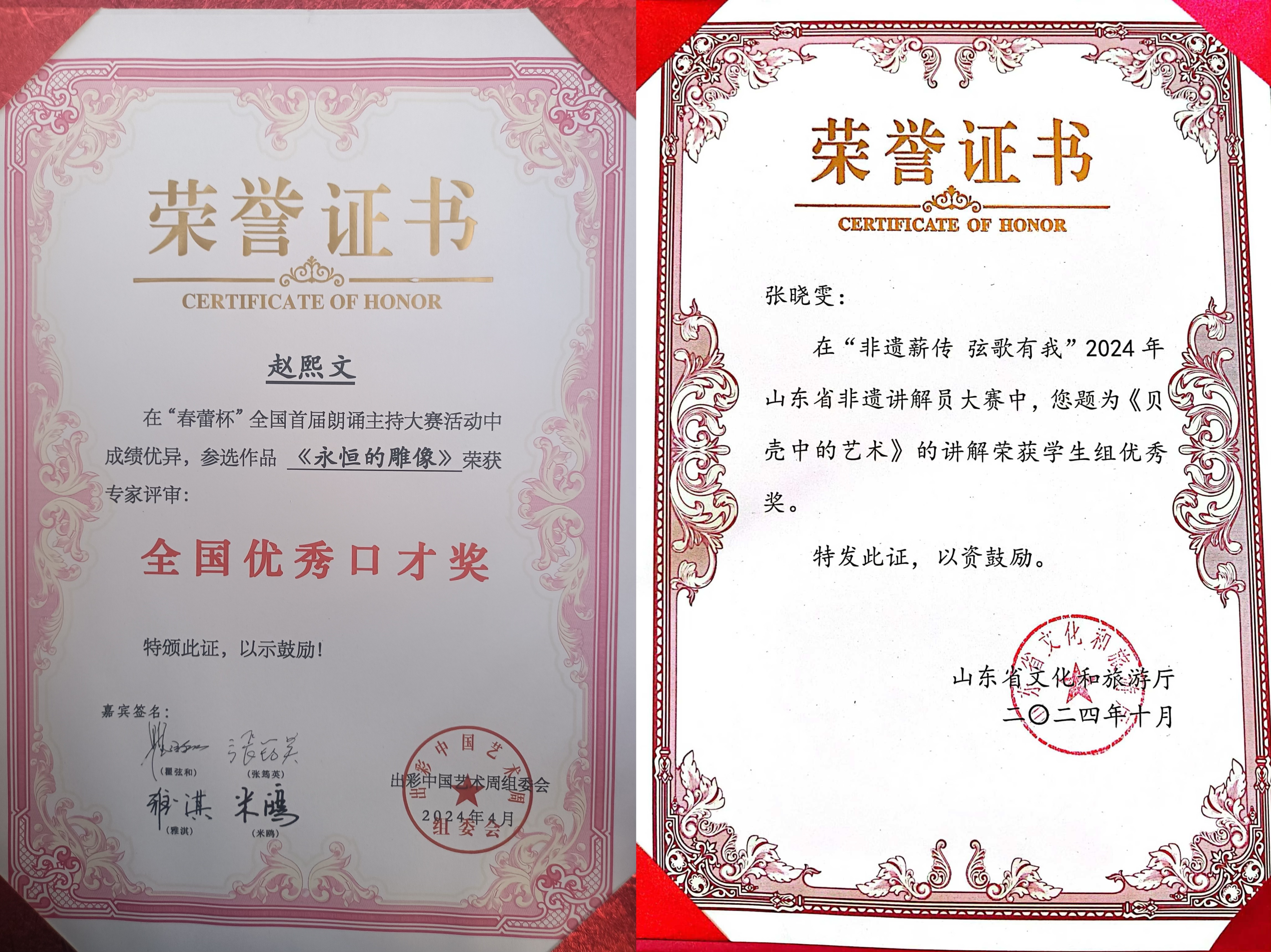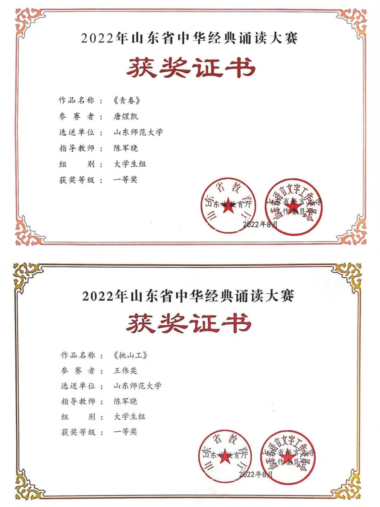 学院学生在播音主持领域表现优异,在各类语言类比赛中屡获佳绩,获得了春蕾杯全国朗诵主持大赛、“声声不息”全国大学生配音大赛、山东省非遗讲解员大赛、山东省中华经典诵读大赛、先进典型故事讲述大赛、大学生主题演讲大赛等奖项30余项次。